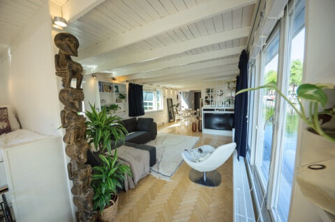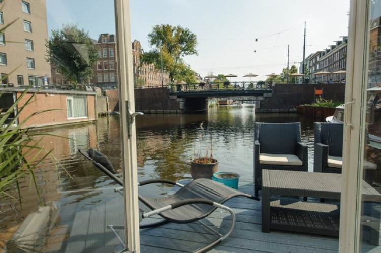 Lovely houseboat with terrace directly on the water and on a great location in Amsterdam.