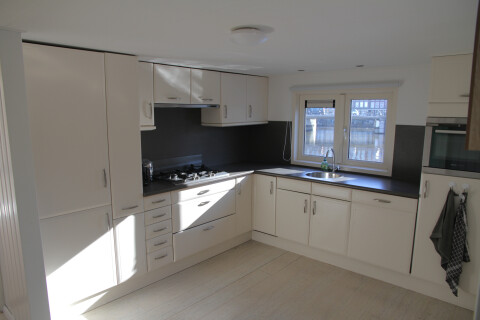 Per direct te huur; prachtige gemeubileerde woonboot in het Centrum van Amsterdam op de Cruquiuskade (2 slaapkamers).
